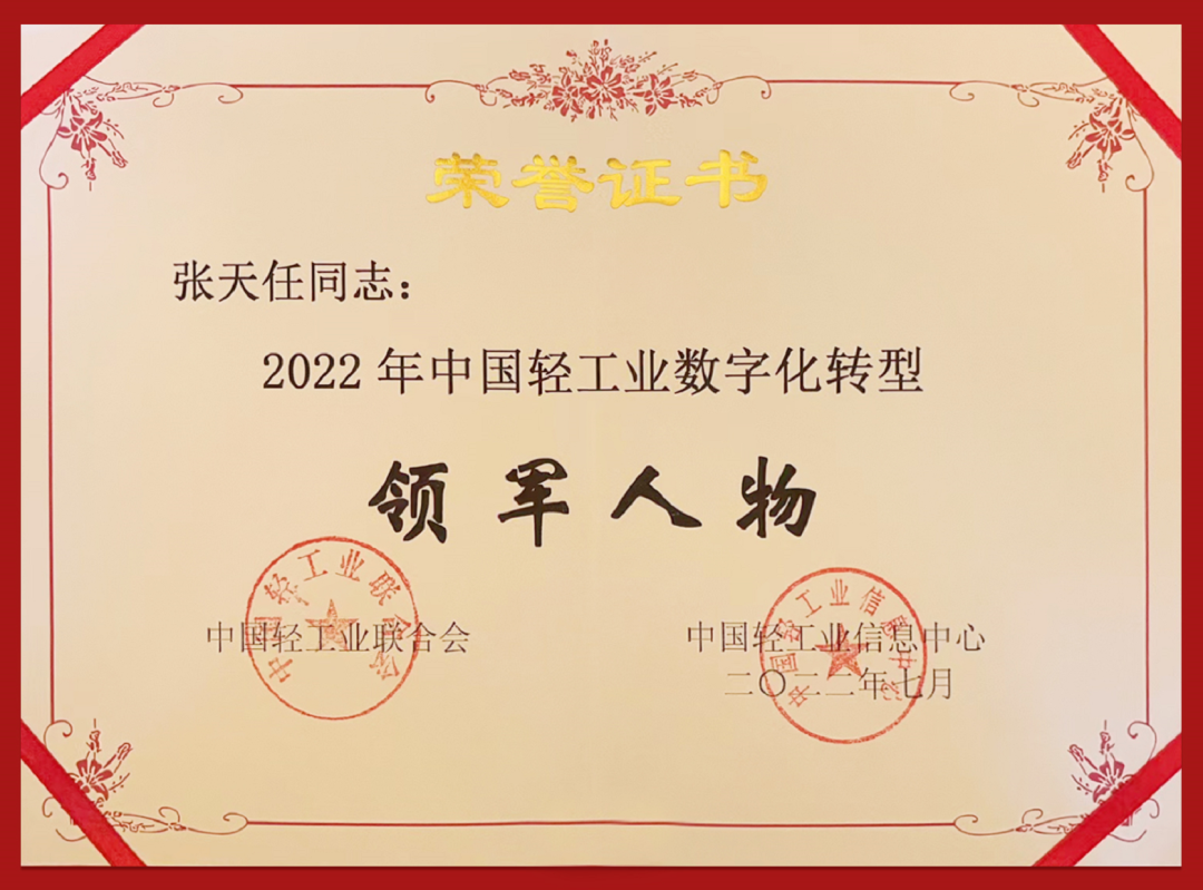 ● 7月27日,在第十二届中国轻工业信息化大会上,开云·Kaiyun控股集团获得“中国轻工业数字化转型先进单位”,张天任董事长获得“中国轻工业数字化转型领军人物”。